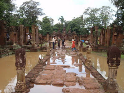 2日目は1日目に比べてより郊外を遺跡を見ることにしました、トータルで6か所くらいにいったんですがさすがに絞らせていただきます。 まず女の砦という意味の寺院、バンテアイ・スレイ。 ほかの寺院が規模とか迫力でアピールしているのに対して、すごくこじんまりした造りになっているのが大きな違いです。 お堀の外から撮影 色が赤色なのも特徴 子供の時に見ていたら、泣いていただろうな・・・・ で帰りの駐車場に行く途中に観光客を待ち構える「おみやげガールズ」 数メートルに以内に近付くと怒涛のおみやげセールスをやってきます。 ちなみに彼らは私をみて「おとーさん」と言ってきました。(怒) 別の場所ではちゃんと「おにーさん」だったのであしからず。 |