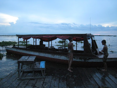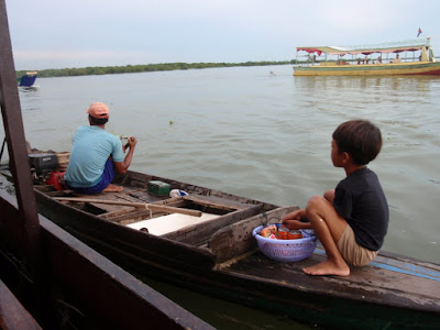 東南アジア最大の湖であるトンレサップ湖は前回も行ってますが、トンレサップ湖から夕日をなんとか拝みたく、そしてトンレサップ湖で暮らす人たちにまた会いたくなり行ってきました。 前回乾季に行ったときと今回の雨季ではこの湖のスペースが全然違ってきます。その差はなんと4倍。湖自体が生き物のようです。 そして写真のように湖に暮らす人たちがたくさんいます。 夕日をみるためにかなり進むと陸地が見えなくなってきます。もはや湖というよりは海にいる錯覚に陥ります。 止まって眺めていたら一隻のボートがやってきていきなりくっつけてきました。 海賊ではなく飲み物売りでした。 今回は残念ながらこれが限界でした。 灯りがないからか夕方に湖で髪を流している女性を何人かみました。 ツアーなどでここが含まれているか私は知りませんが、アンコール・ワットに行かれる方にはぜひ立ち寄っていただきたいスポットです。 さてこの2日間、私をいろいろ場所に連れて行ってくれたトゥクトゥクの運転手さんはプノンペンに家族を残して単身赴任でシェムリアップで働いているとのことでしたが、11月には家族の元に戻って仕事をするようです。 新天地でも頑張ってくださいね! 6日目に続く |